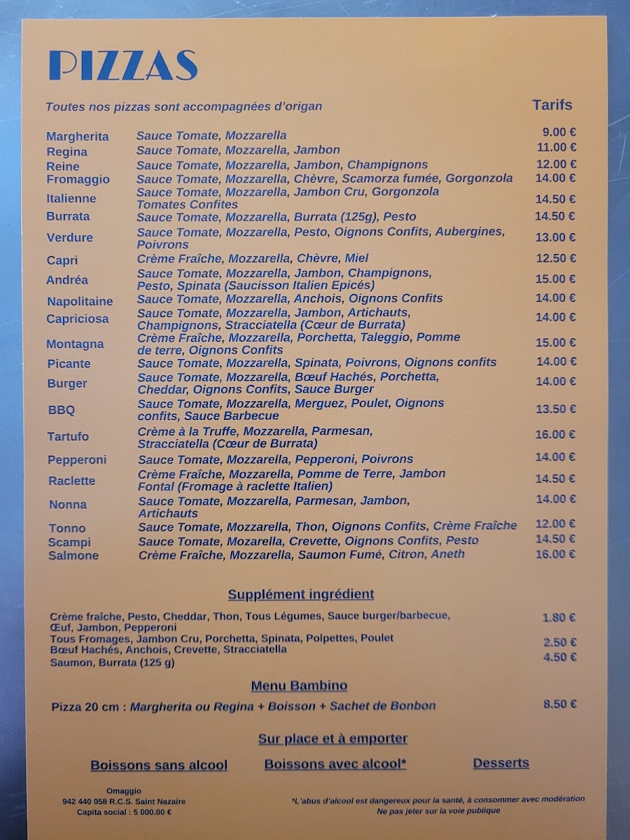 Welcome to Omaggio - Nonna Ivana, a charming pizza restaurant nestled in Saint-André-des-Eaux. Here, culinary creations are inspired by the heart and soul of Italian traditions. Guests rave about the delightful pizzas, characterized by a rich tomato sauce and abundant cheese, creating a hearty experience that delights the palate. The warm and inviting atmosphere, paired with friendly service, creates an unparalleled dining experience.